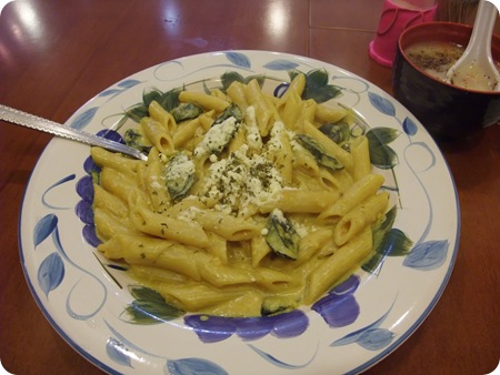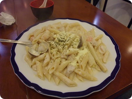 13點的奶油豪華海鮮義大利麵,NT.130,加麵多NT.20。本來要點大貝殼麵的,但是今天沒有,只好點筆管麵,份量還算多,奶味也足,但是13嫌料太少了。