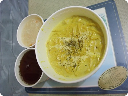 之前外帶的咖哩雞肉麵,外帶只要NT.90,還給你兩個小紙碗裝濃湯跟紅茶,一整個超划算。