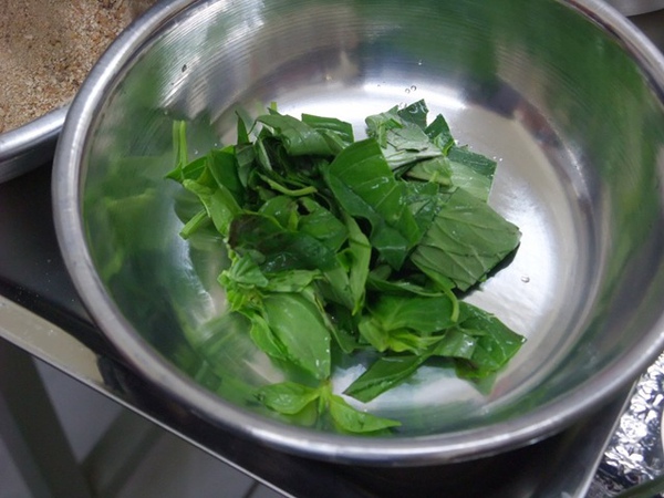 7.九層塔葉洗淨濾乾後,切粗片備用