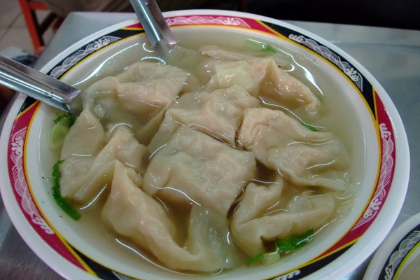 點了一份肉包跟餛飩湯。肉包的個頭不大,可一個卻要價NT.30,包子皮是屬於有咬勁的那種,不會軟趴趴的,吃的到麵皮的香味,一口咬下,裡面是滿滿的肉汁,味道還不錯,只是要小心燙嘴跟噴汁,可以準備圍 圍兜兜吃,哈!
